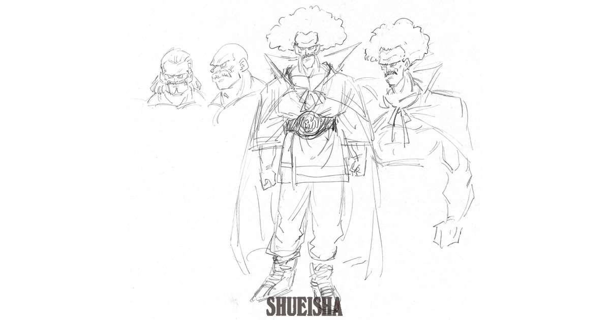 Um raro esboço que serviu de base para a criação do personagem Mr. Satan. Também há estudos com variações como um fisiculturista careca ou versões com cabelo comprido, mas é possível ver que Toriyama praticamente não hesitou ao chegar ao design final do Mr. Satan.