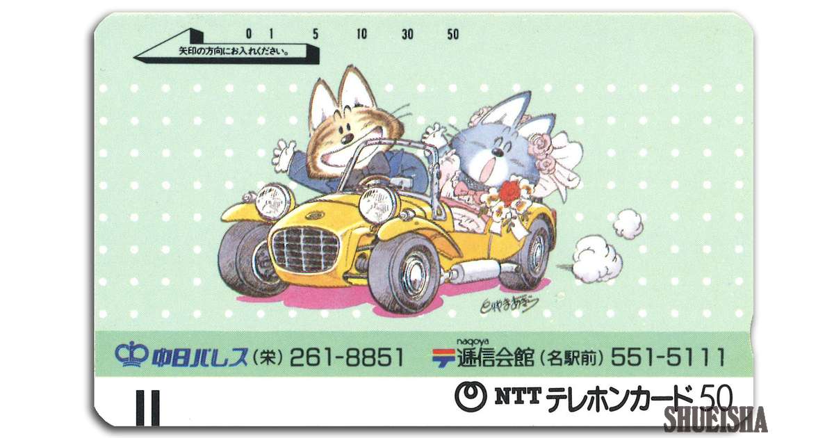 Trata-se de um cartão telefônico oferecido a casais que realizaram cerimônias de casamento no espaço de eventos Chunichi Palace, em Nagoya, e no Nagoya Teishin Kaikan. A ilustração do casal de gatos, visivelmente feliz, é suficiente para deixar qualquer um com um sorriso no rosto.