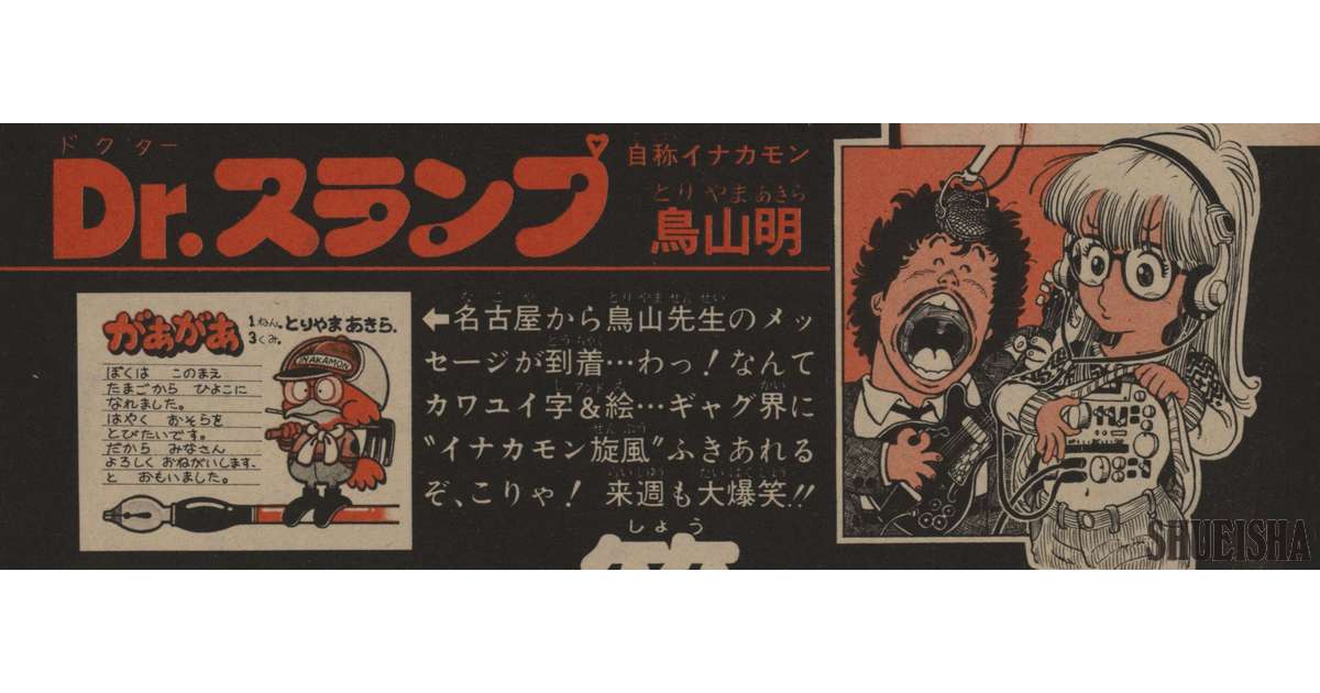 Na prévia do número seguinte, publicada pouco antes do início da serialização de “Dr. Slump”, foi incluída uma apresentação escrita de próprio punho por Akira Toriyama. Junto de um autorretrato fofo em forma de pássaro, ele deixou o comentário típico de um estreante: “Quero voar logo pelo céu”.