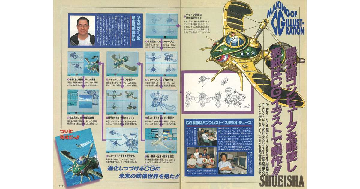 A ilustração de um avião desenhada por Akira Toriyama foi transformada em CG e utilizada na capa da revista. Além da ilustração colorida, Toriyama também produziu desenhos técnicos detalhados em vistas múltiplas para possibilitar a modelagem em computador. Sobre o uso de CG, algo bastante inovador na época, o autor comentou: “Se a tecnologia de CG avançar a ponto de conseguir reproduzir a sensação do desenho à mão, talvez eu acabe ficando desempregado”.
