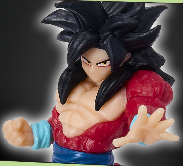 A coleção apresenta personagens em diferentes transformações, com foco em formas avançadas como Super Saiyajin Blue, Super Saiyajin 4 e Instinto Superior. Entre os destaques, estão versões especiais com base de efeito (SS Rare), além do modelo secreto que traz uma fusão em sua forma Super Saiyajin 4. Cada unidade inclui uma figure com base e 20g de chocolate.