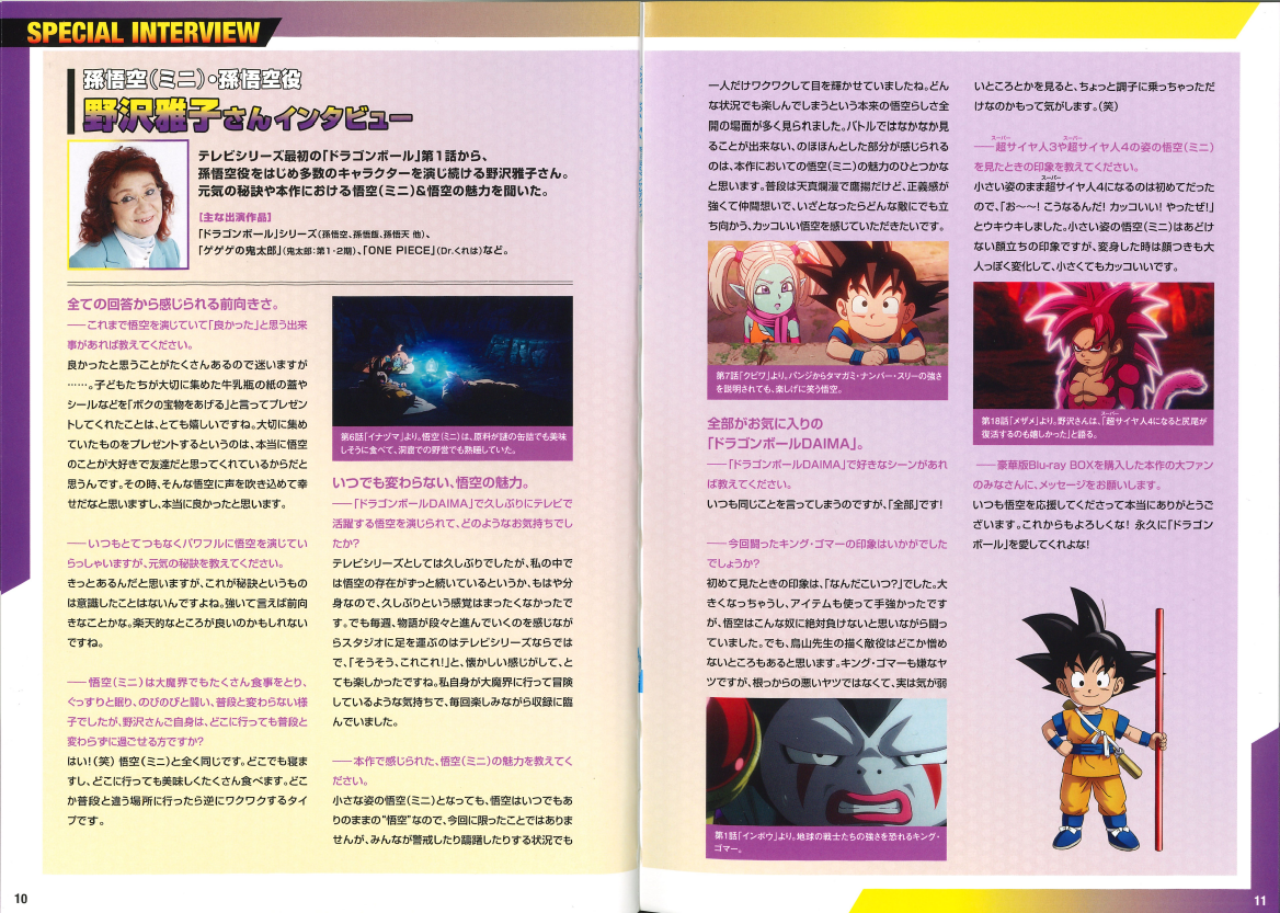 Kobayashi: É difícil escolher, porque havia tantas cenas que fariam qualquer fã de Dragon Ball babar. Começando com o impacto de ver Goku e os outros voltarem à aparência pequena, como no início da aventura, e chegando ao clímax, quando se transforma em Super Saiyajin 4, eu assisti aos 20 episódios, episódio por episódio, cheia de empolgação!