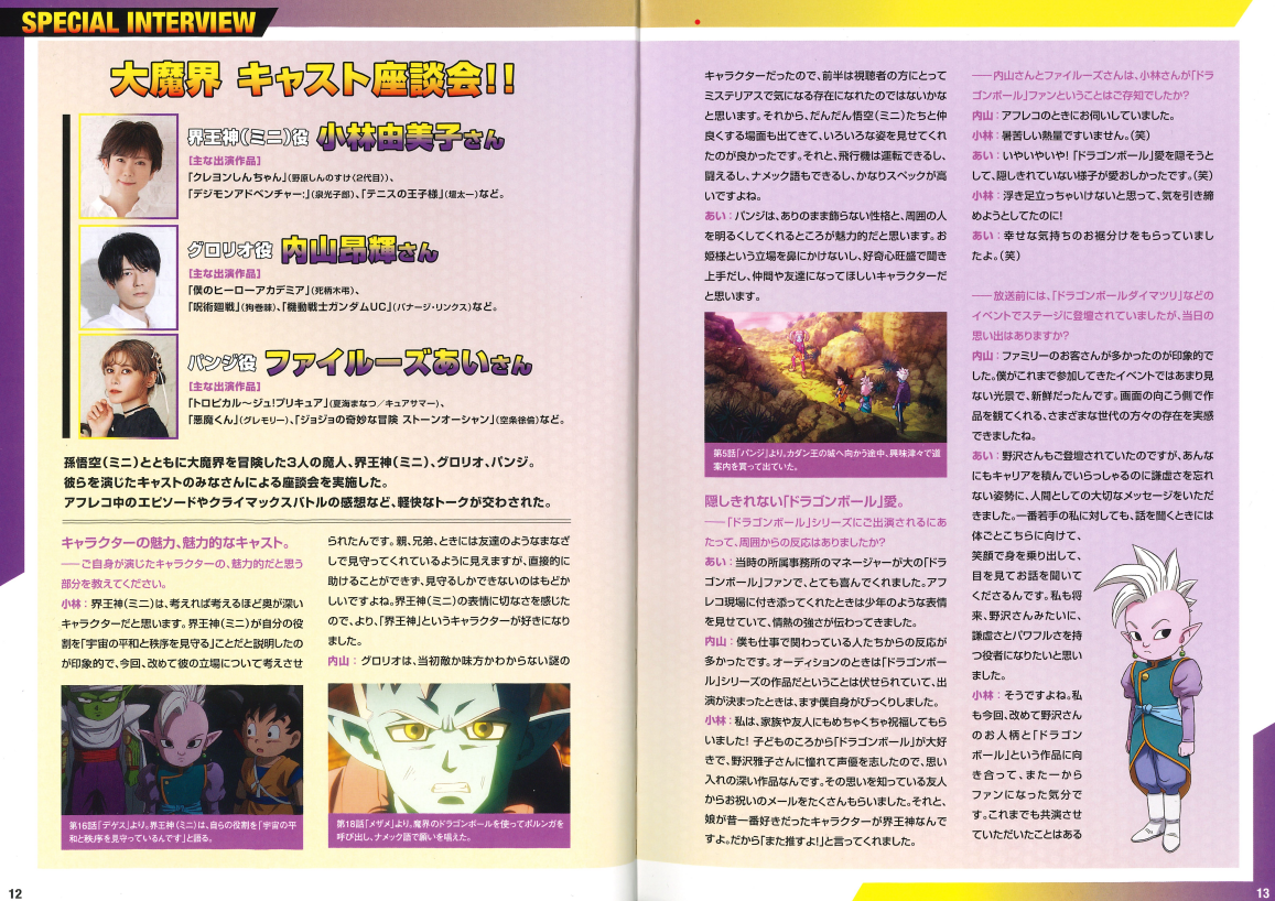 Os três demônios que se aventuraram pelo Grande Reino Demoníaco com Son Goku (Mini) — Kaioshin (Mini), Glorio e Panzy — participaram de um bate-papo com os membros do elenco que os interpretaram. Durante o encontro, eles compartilharam histórias das sessões de gravações, impressões sobre a batalha clímax e outras conversas descontraídas.