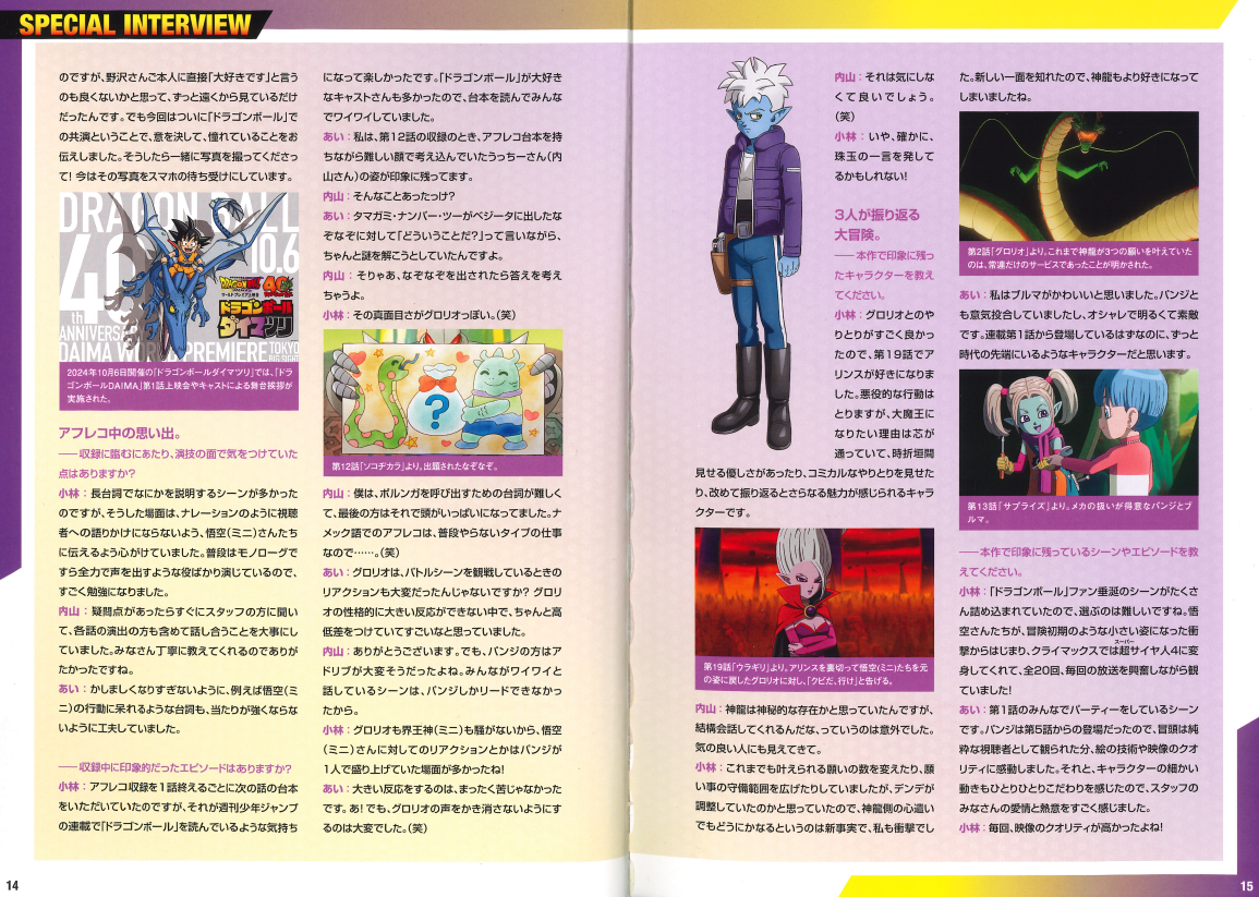 Uchiyama: Para mim, a fala para invocar Porunga foi bem difícil, e perto do final era tudo em que eu conseguia pensar. Gravar em Namekujin não é algo que eu costumo fazer… (risos)