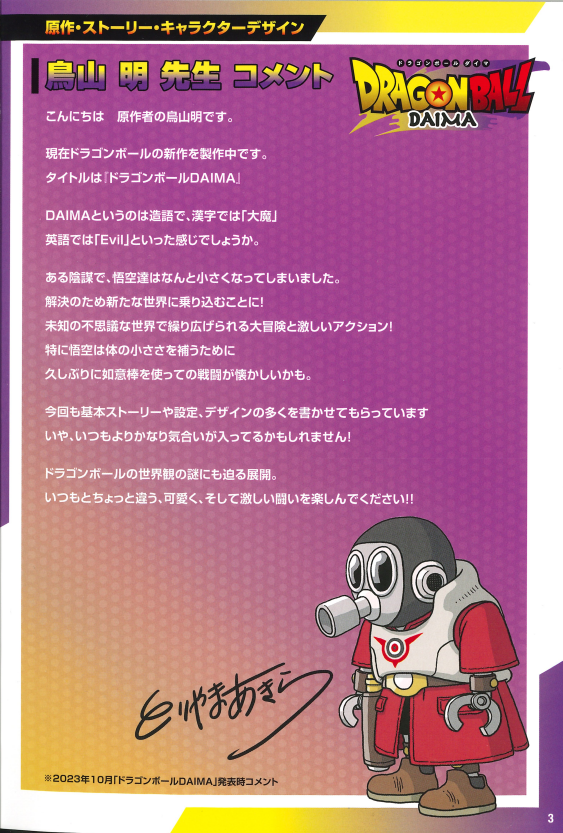 Estou trabalhando em uma nova série de Dragon Ball, com o título “Dragon Ball Daima”.