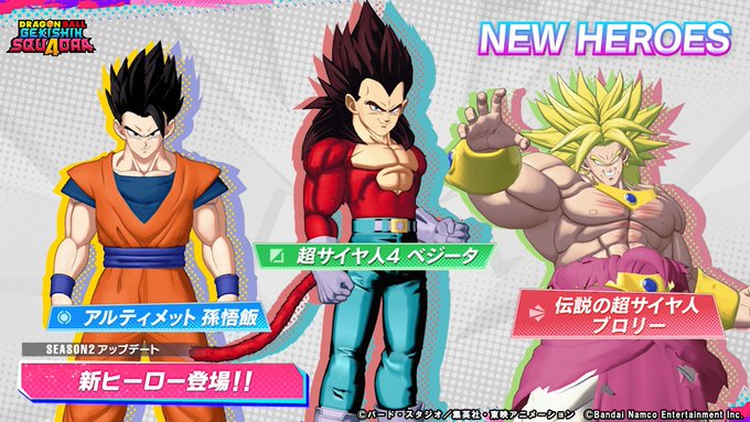 A Season 2 de Dragon Ball Gekishin Squadra começará em 19/11/2025, às 15h (JST). O trailer oficial, com 1 minuto e 42 segundos, apresenta os heróis, skins e emotes previstos para entrar no jogo ao longo da nova temporada. A Bandai Namco também divulgou um código serial que concederá aos jogadores a Cápsula P2, cuja distribuição só ocorrerá após o início da Season 2.