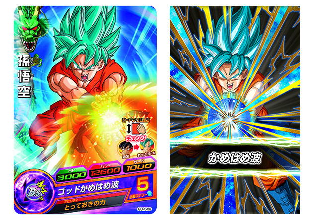 O primeiro é um cartão exclusivo de Dragon Ball Heroes, com um Goku que pode se transformar em Super Saiyajin God SS!