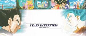 Nós criamos o que seria o “projeto básico” aqui. Depois, enviamos para o departamento de CG (Computação Gráfica) para que eles criem o modelo em 3D. Desta vez, isso incluiu o interior da nave do Freeza, o Inferno e os cenários das cenas de batalha. Por exemplo, os dados dos painéis dentro da nave foram todos preparados pela equipe de arte como texturas e aplicados às imagens em CG. Além disso, hoje em dia é comum ter ambos os tipos de cenários: os desenhados no papel e os digitais feitos com caneta tablet.