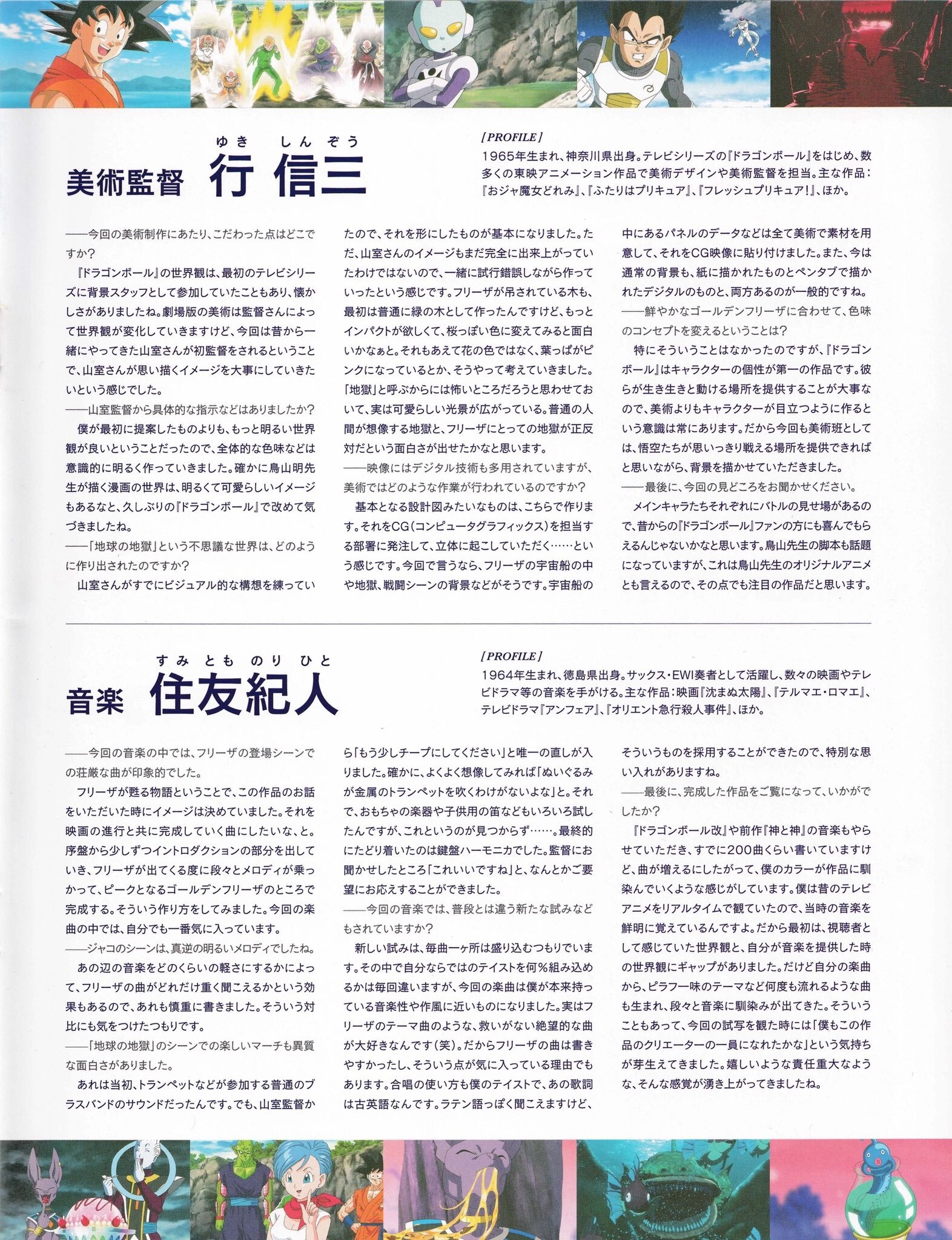 Como participei do mundo de Dragon Ball como parte da equipe de cenários na primeira série de TV, senti uma certa nostalgia. A arte das versões cinematográficas costuma mudar de acordo com o diretor, mas desta vez o Yamamuro-san, com quem trabalho há muito tempo, estava fazendo sua estreia como diretor geral. Por isso, quis valorizar ao máximo a imagem que ele tinha em mente.