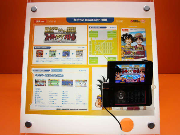 No Tokyo Game Show 2008, realizado de 9 a 12 de outubro no Makuhari Messe, a Bandai Networks apresentou um protótipo chamado Dragon Ball × One Piece Super BT Battle. O título reunia personagens das duas maiores franquias da Shonen Jump em um jogo de luta para celulares, demonstrando o potencial de uma tecnologia então inédita nos aparelhos da operadora au/KDDI: o multiplayer via Bluetooth, permitindo combates diretos entre jogadores, sem depender de internet. O recurso conectava celulares em um raio de cerca de 10 metros, eliminando atrasos típicos das partidas online e funcionando de forma semelhante ao modo ad-hoc do PSP ou do Nintendo DS.