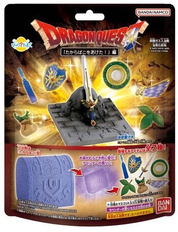 A Bandai Spirits iniciará no dia 16 de fevereiro de 2026 as vendas do novo Bikkura Tamago da série Dragon Quest, intitulado “Abrindo o Baú do Tesouro!”. O produto consiste em uma bomba de banho em formato de baú do tesouro, com 195 g, fragrância de lavanda e coloração roxa. Ao dissolver completamente na água, um dos sete mascotes colecionáveis é revelado, acompanhado de uma base expositora, permitindo que o item seja exibido após o uso. A linha inclui miniaturas de itens clássicos da franquia, como Espada de Roto, Escudo de Roto, Erva Medicinal, Água Sagrada, Folha da Árvore do Mundo, Espelho de Ra e Asa de Quimera, sendo um item aleatório por unidade, sem possibilidade de escolha.