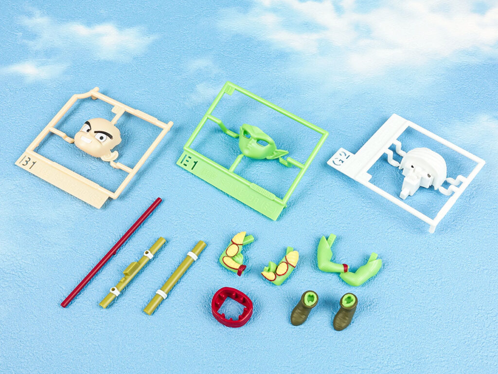 Cada set recria fielmente o visual dos personagens com moldagem em cores específicas e uso de impressão tampográfica nos rostos para capturar expressões detalhadas. Além disso, peças como o bastão Nyoi-bou de Goku e o braço de Piccolo vêm pré-pintadas, evitando o uso de adesivos.