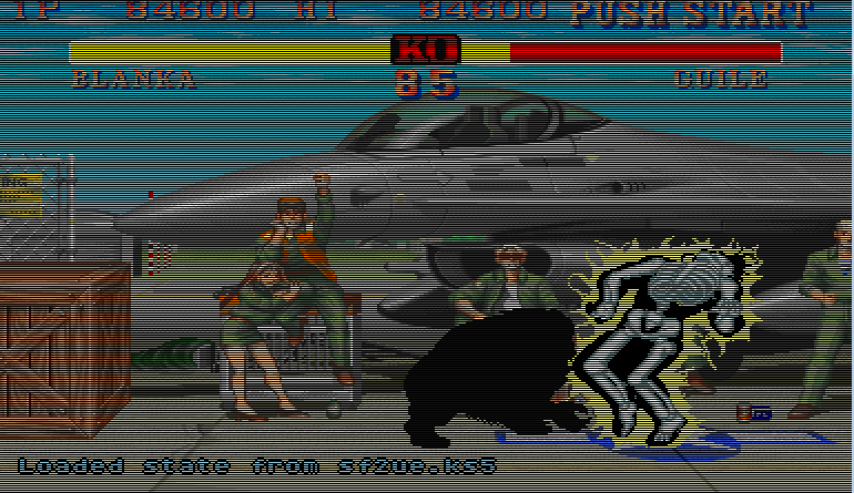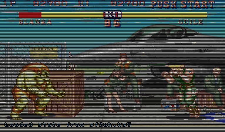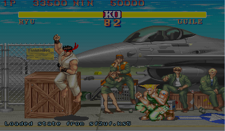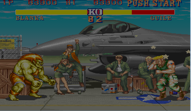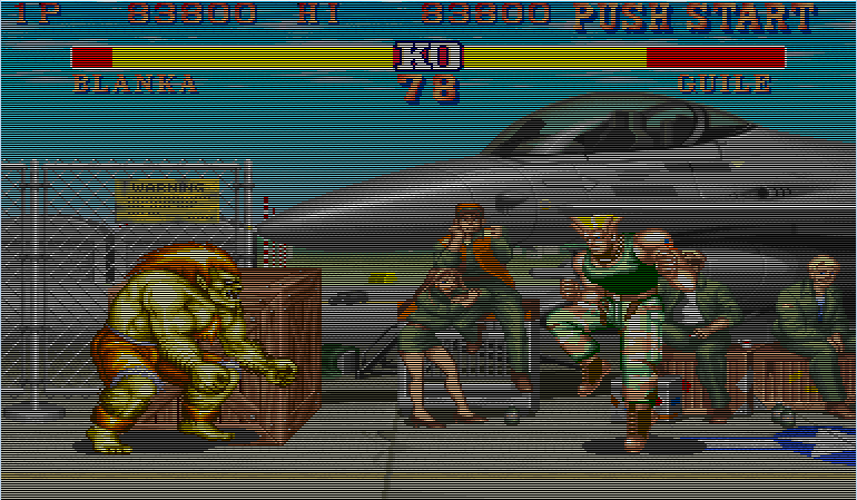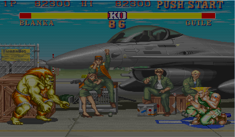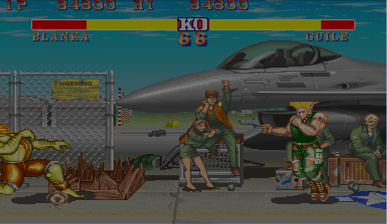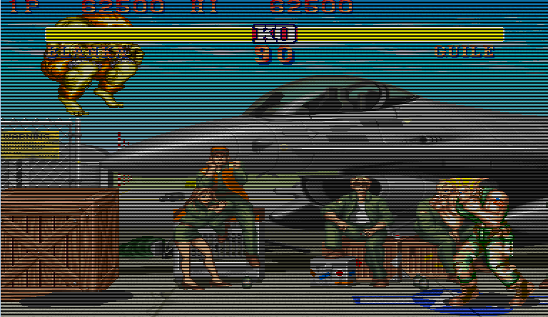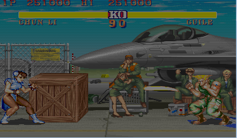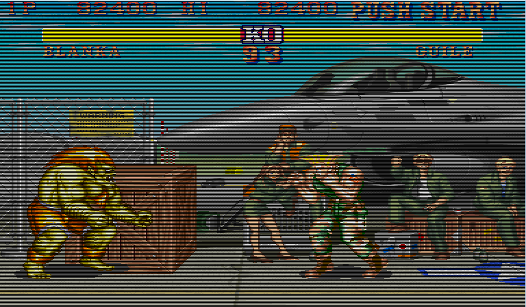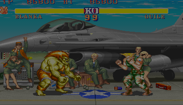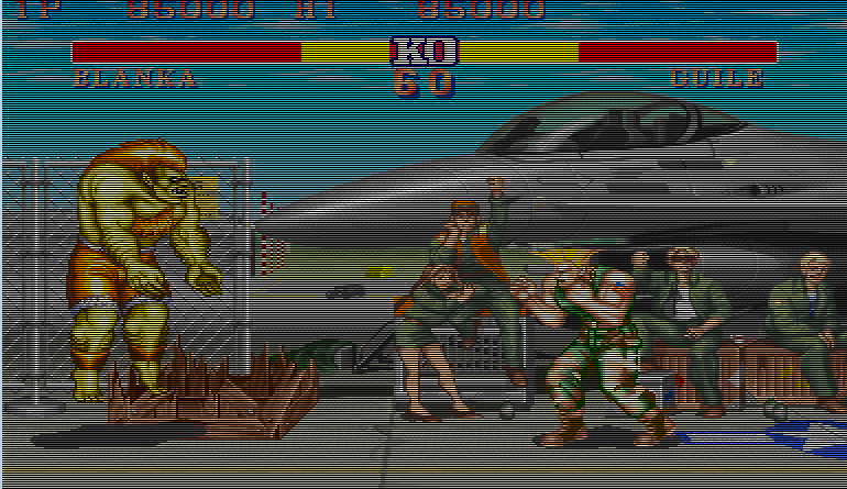 Sprites do casal de militares próximos ao corner esquerdo em Street Fighter II World Warrior (todas as versões lançadas oficialmente pela CAPCOM).