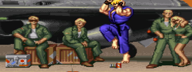 Os militares 1 e 2 não estão presentes no SNES. Reza a lenda que eles foram limados do jogo devido a posição obscena em que a militar 1 se encontra, como se estivesse com a mão nas partes íntimas do militar 2. Mas os dois estão presentes no Mega Drive e bem animados... literalmente.